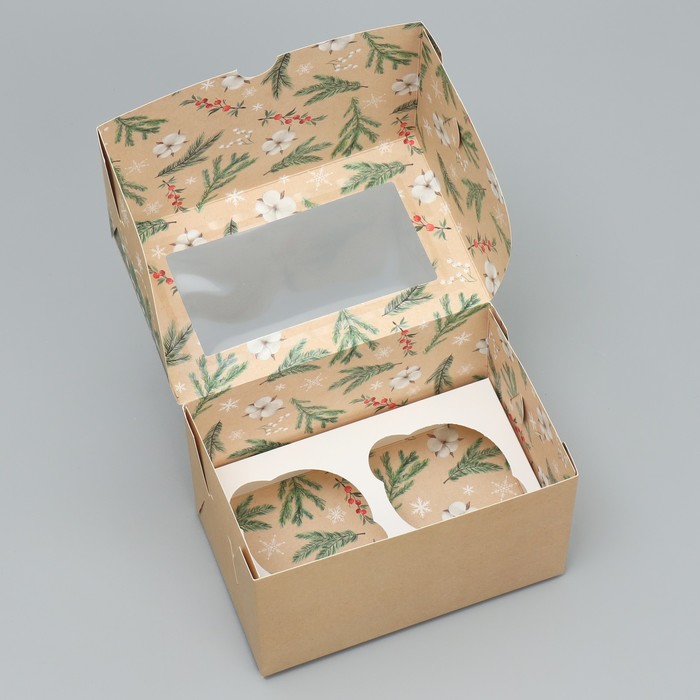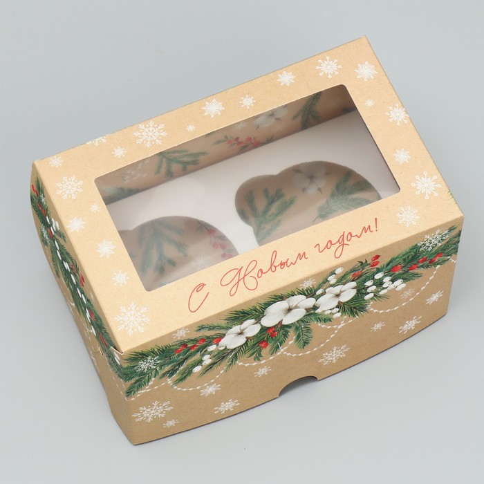 Коробка на 6 капкейков с окном, крафт, 25×17×10 см