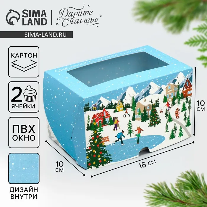 Коробка для капкейков, кондитерская упаковка, 2 ячейки «Поздравляю», 16 х 8 х 7.5 см