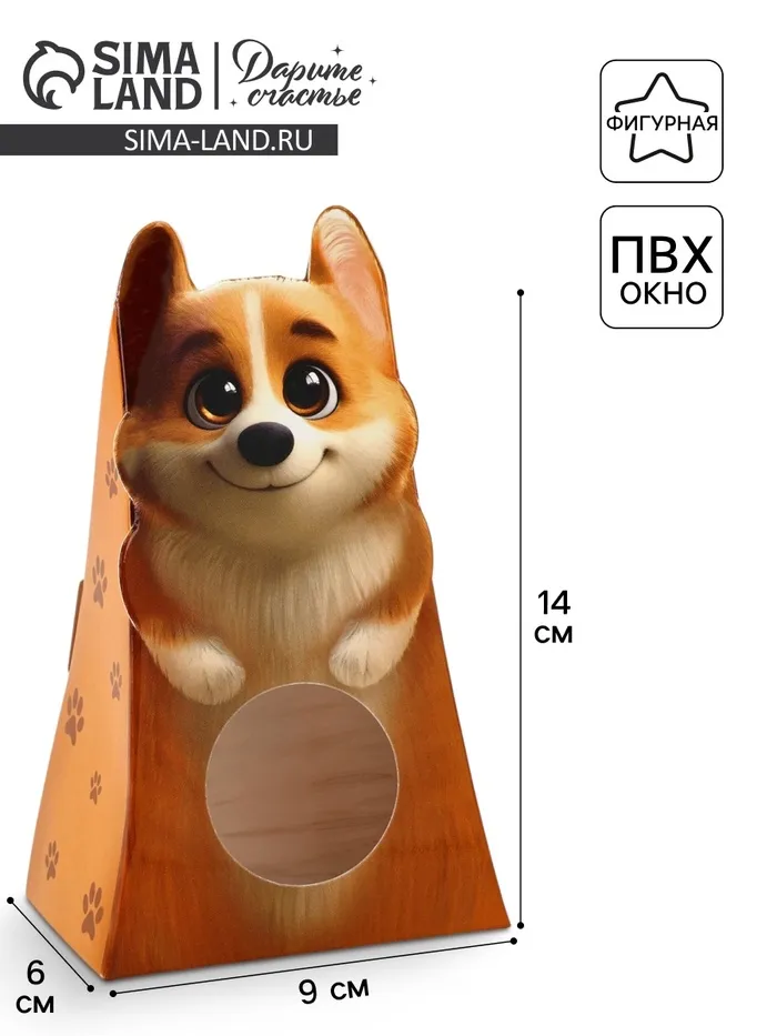 Коробка складная с окном «Корги», 9 х 14 х 6 см — Характеристики