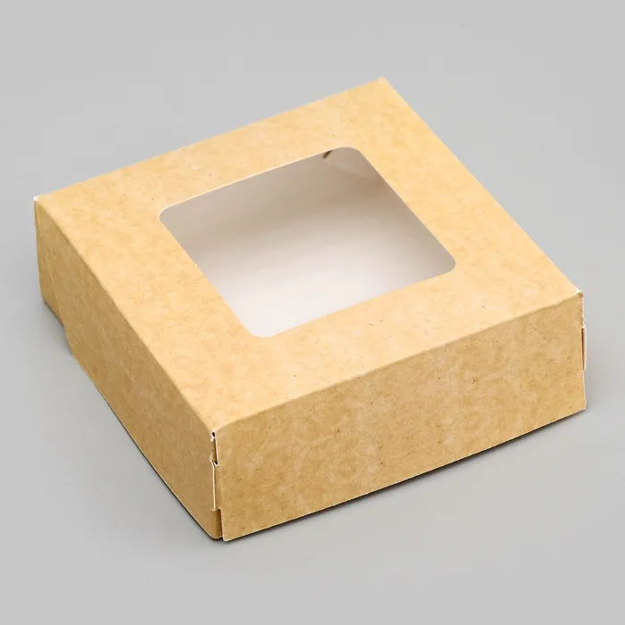 Коробка складная, с окном, крафт, 11.5×11.5×4 см — Характеристики