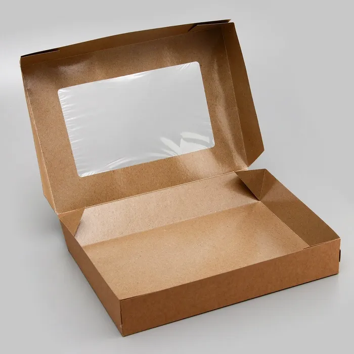 Коробка складная, с окном, крафт, 28×20×5 см — Характеристики