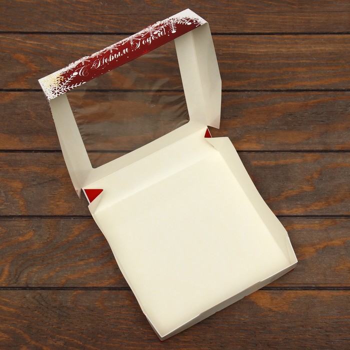 Коробка складная с окном «Новый год» 20×20×4 см — Характеристики