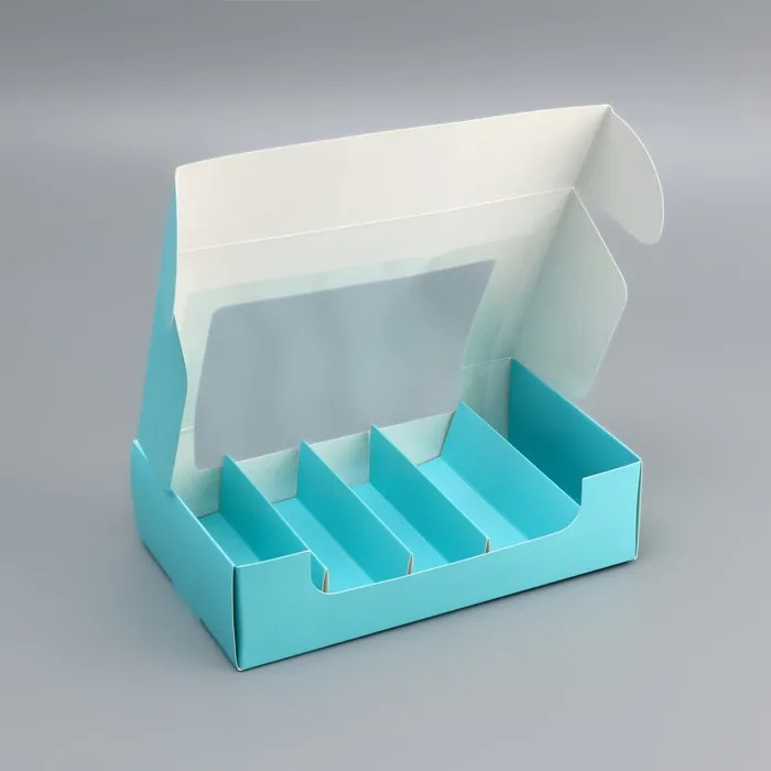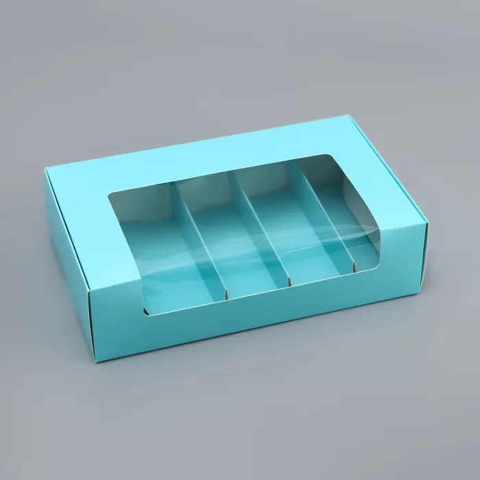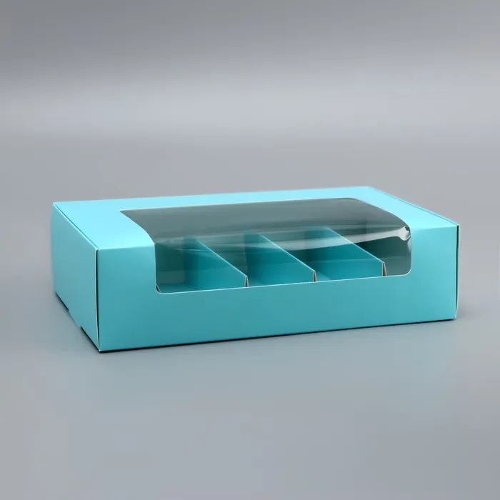 Коробка складная с окном под 5 эклеров - идеальное решение для упаковки и подарка нежных и ароматных эклеров. Прозрачное окно позволяет наслаждаться их видом и аппетитным содержанием, делая эту коробку отличным выбором для подарков или продажи десертов. С этой коробкой, эклеры готовы к радостному угощению.