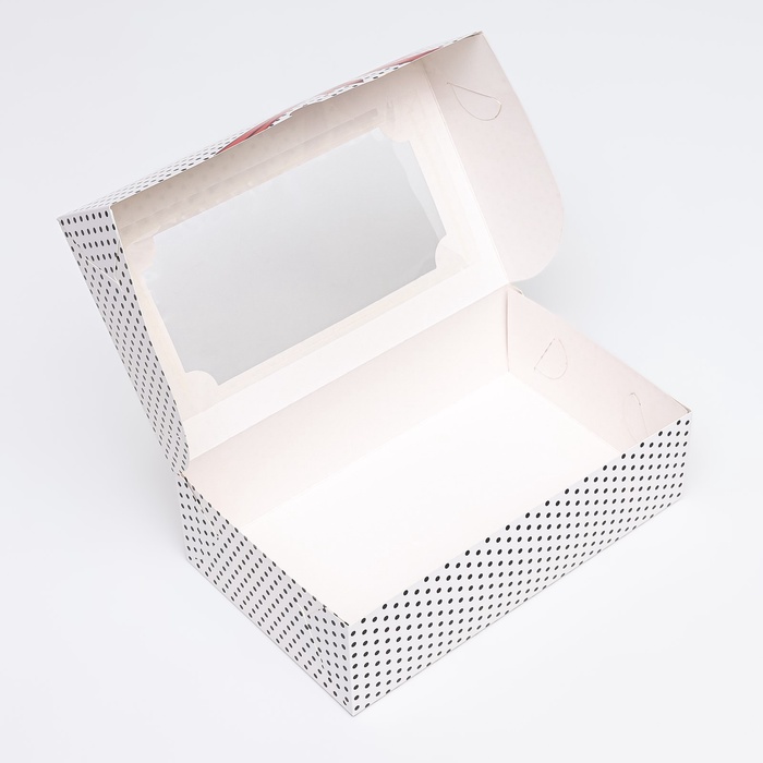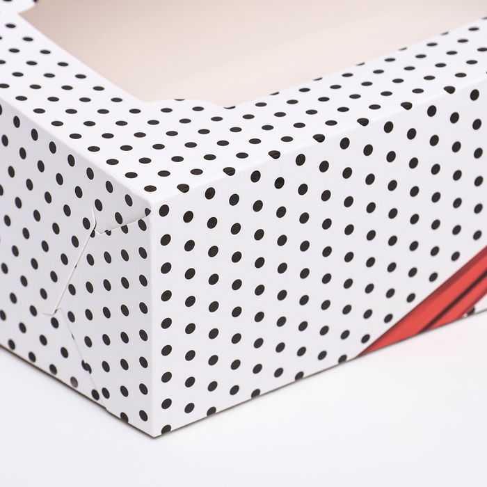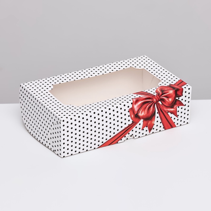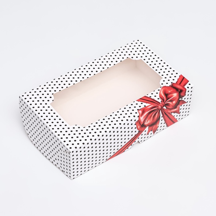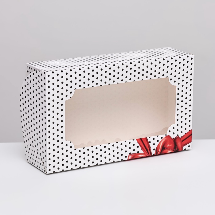 Коробка складная с окном под зефир «Горошек с бантиком», 25×15×7 см — Характеристики