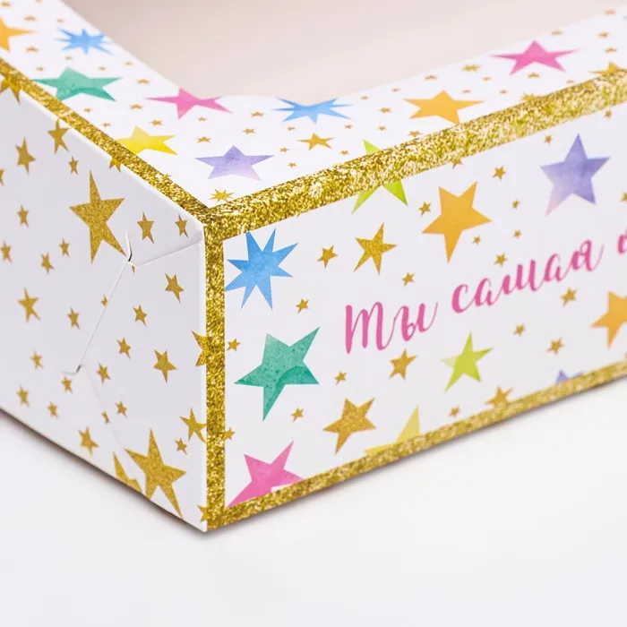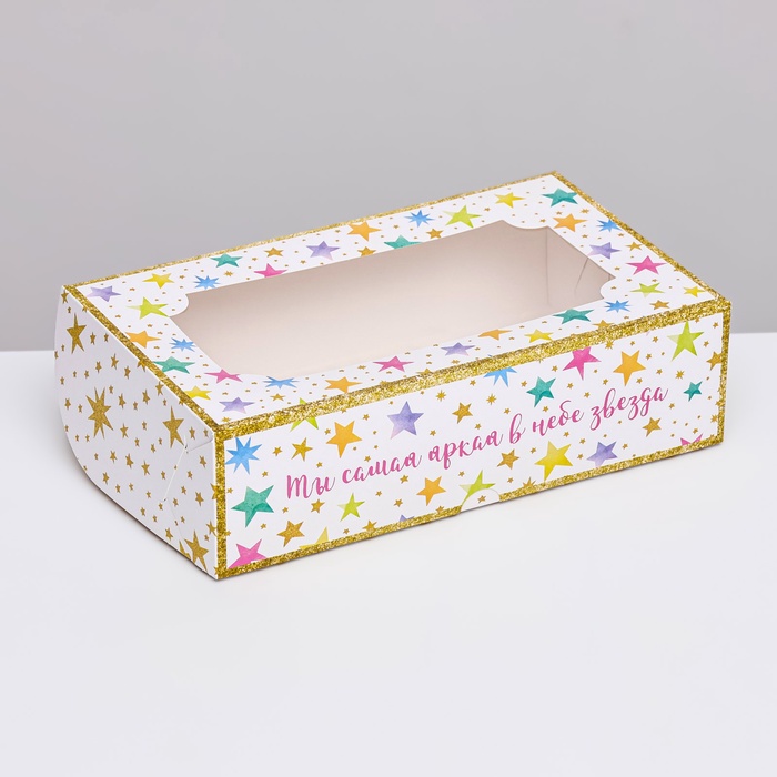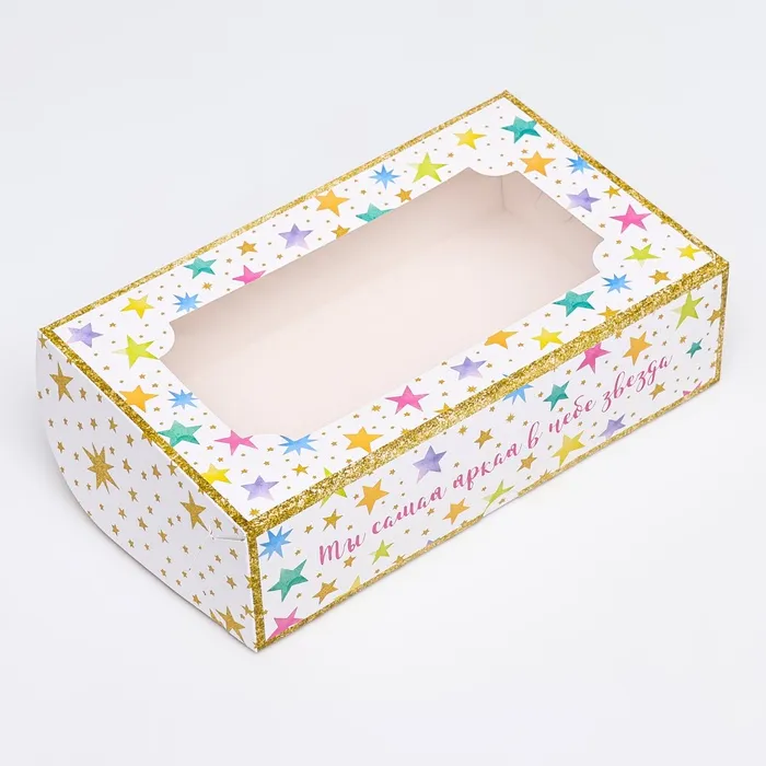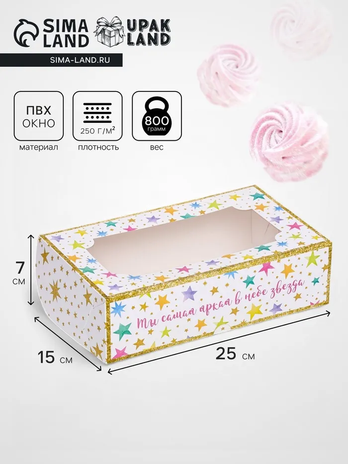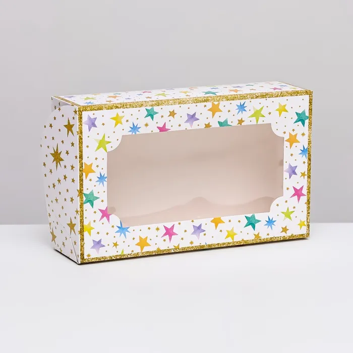 Коробка складная с окном под зефир «Яркая звезда», 25×15×7 см — Характеристики