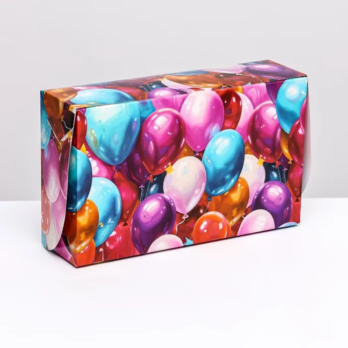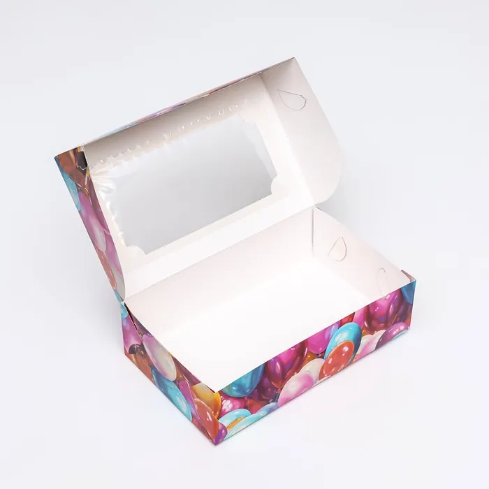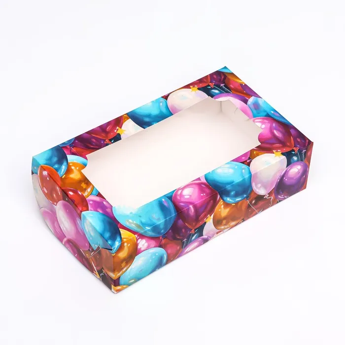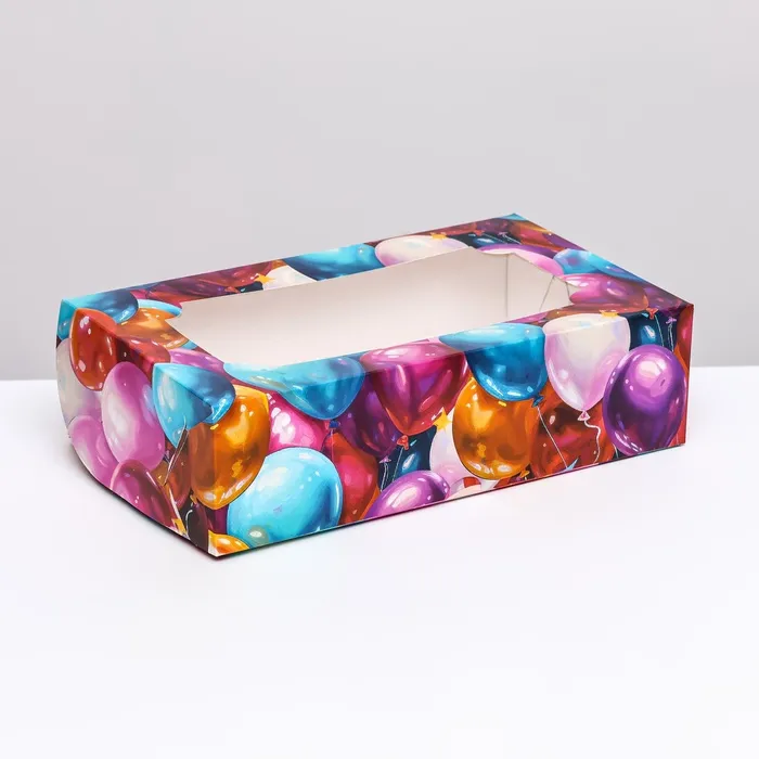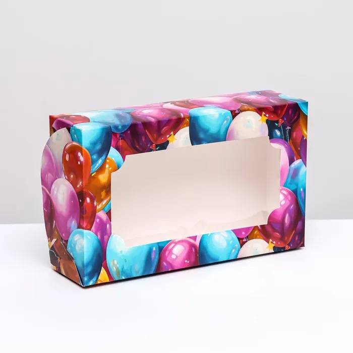 Коробка складная с окном под зефир «Шары», 25×15×7 см — Характеристики