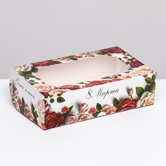 Коробка складная с окном «С 8 марта!», 25×15×7 см — Характеристики