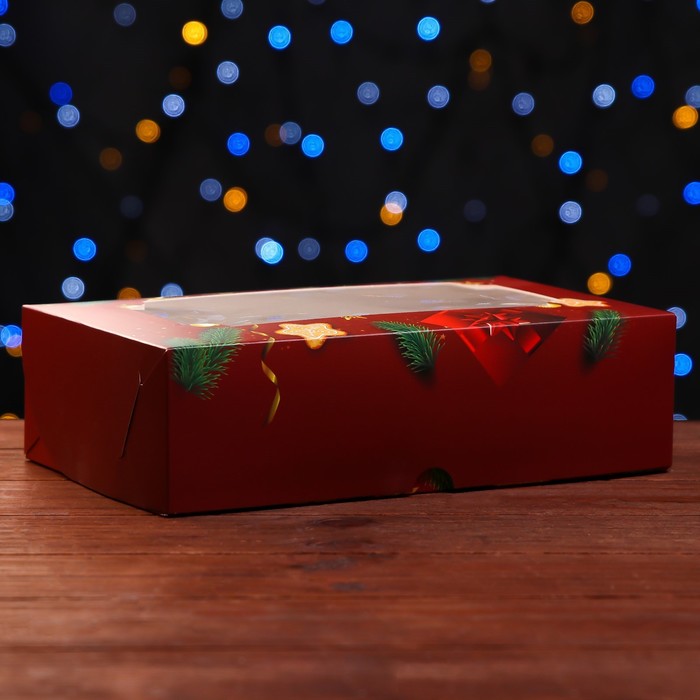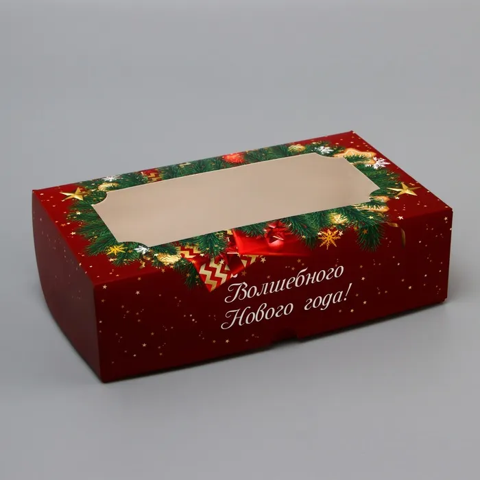 Коробка складная с окном «С Новым Годом!», 25×15×7 см — Характеристики