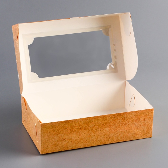 Прозрачное окошко на крышке позволяет эффектно продемонстрировать содержимое — будь то домашние сладости, выпечка, сувениры или небольшие подарки — без необходимости открывать коробку. Складная конструкция делает коробку удобной для хранения и быстрой сборки, а её размеры обеспечивают вместительность для различных предметов.