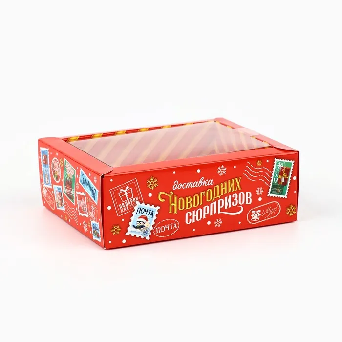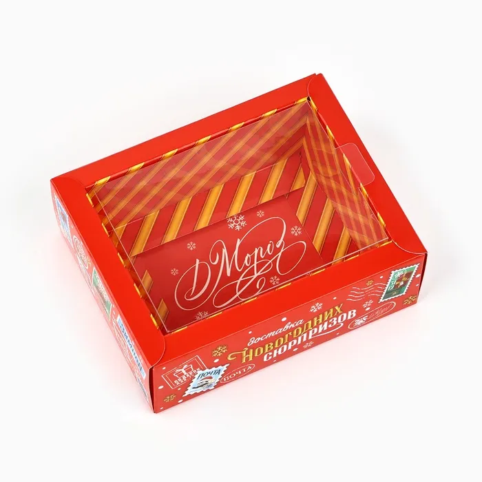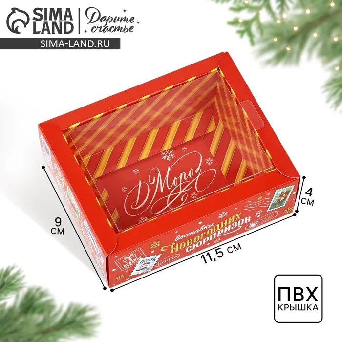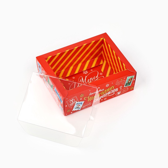 Коробка складная с пластиковой крышкой «Новогодняя доставка», 11.5 х 9 х 4 см