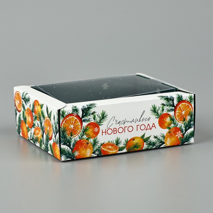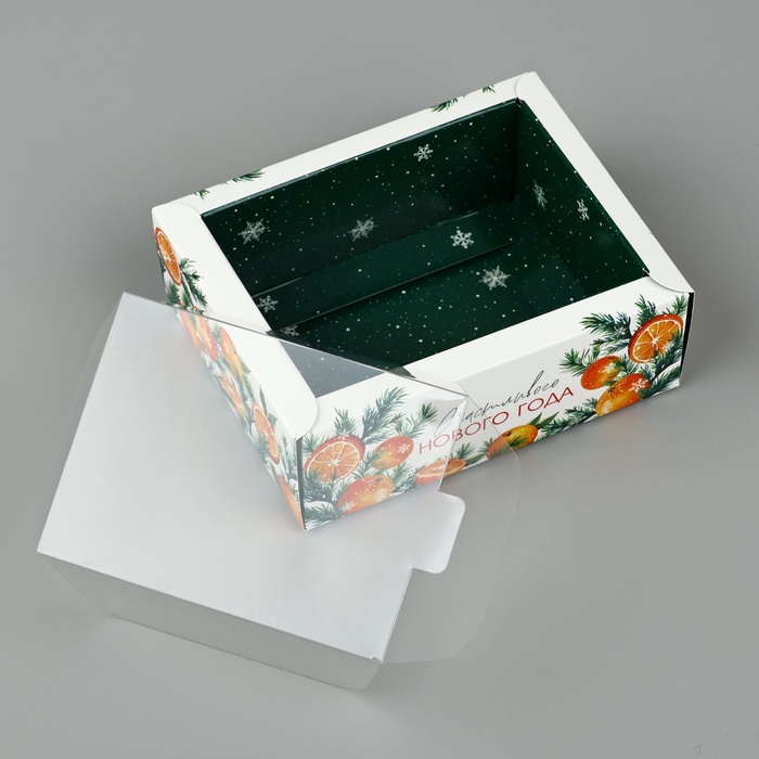 Коробка складная с пластиковой крышкой «Счастливого Нового года», 11.5 х 9 х 4 см