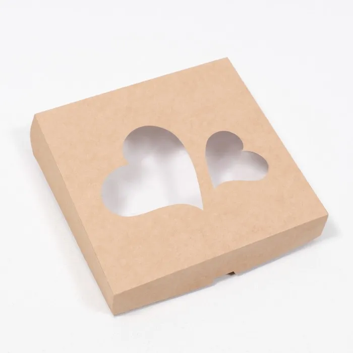 Коробка складная «Сердца», крафт, 20×20×4 см — Характеристики