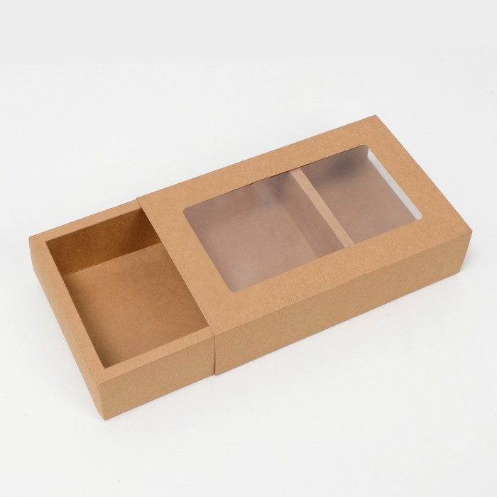 Коробка складня, пенал, с окном, крафтовая, 25×16×6 см — Характеристики