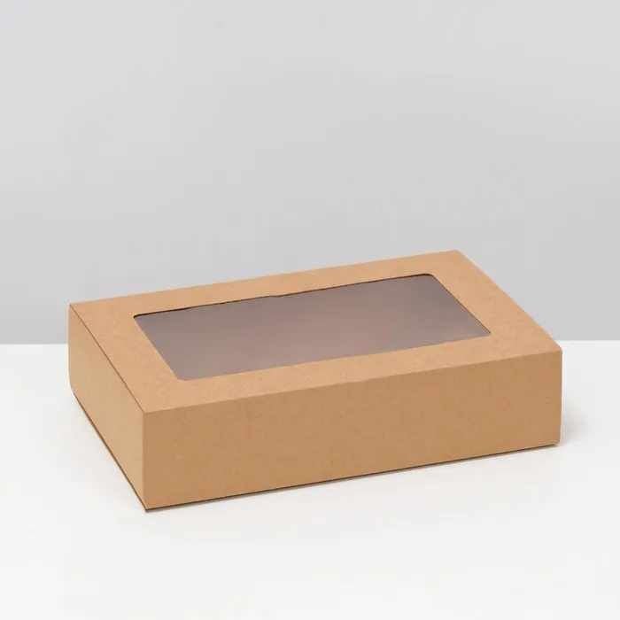 Коробка складня, пенал, с окном, крафтовая, 25×16×6 см — Характеристики