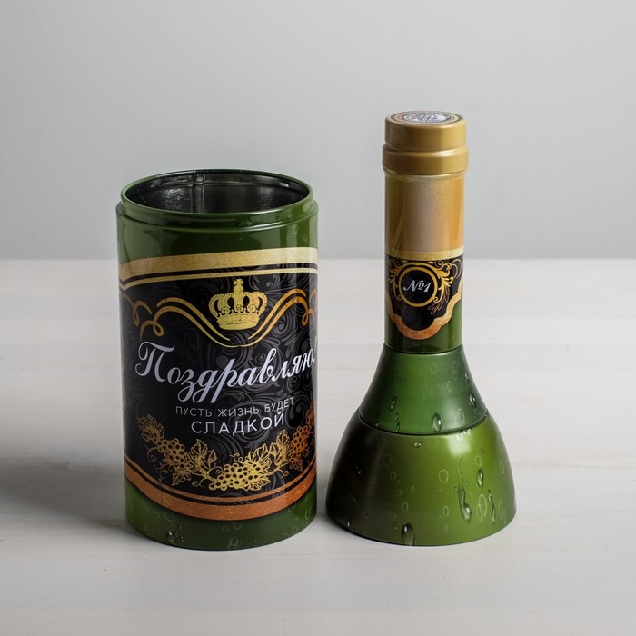 Коробка жестяная в форме бутылки «Поздравляю», 22 см × 7,2 см × 9,5 см — Характеристики