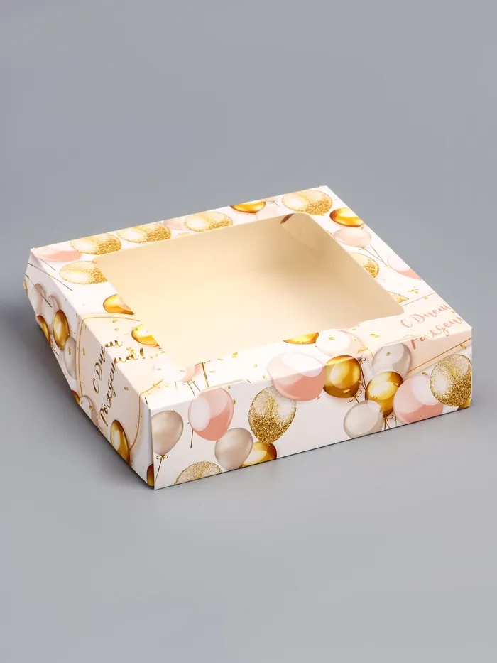 Коробки подарочная, складная, с окном, «С Днем Рождения» 15×15×4 см — Характеристики