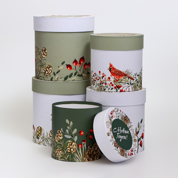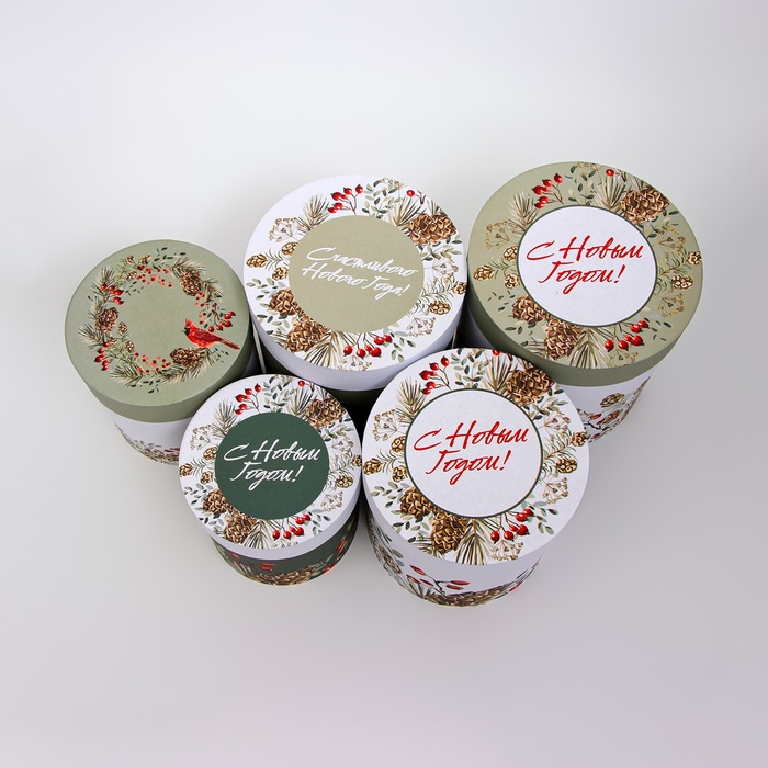 Коробки подарочные шляпные 5 в 1 «Счастливого Нового года», 20×20 — 15×15 см — Характеристики