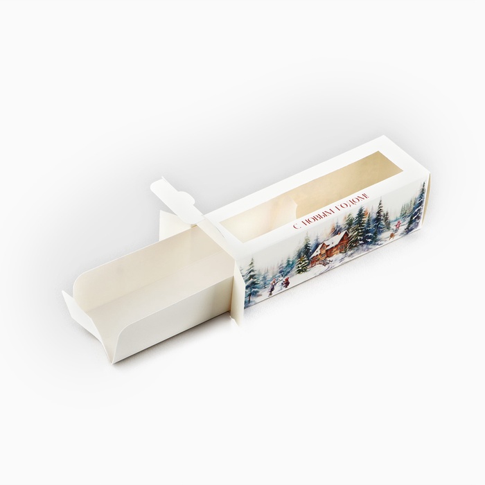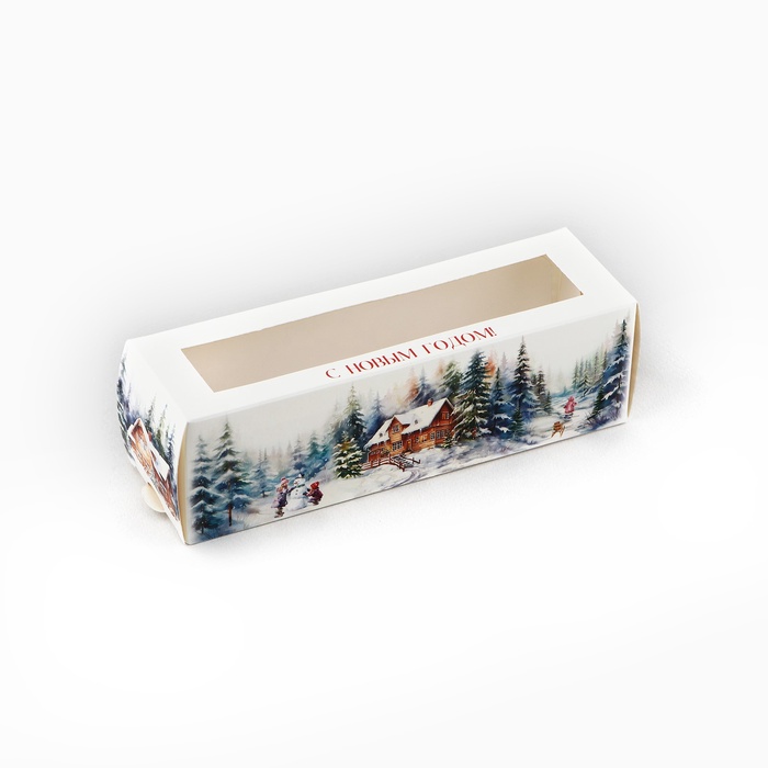 Коробочка для макарун «Снежные домики» 18 х 5.5 х 5.5 см