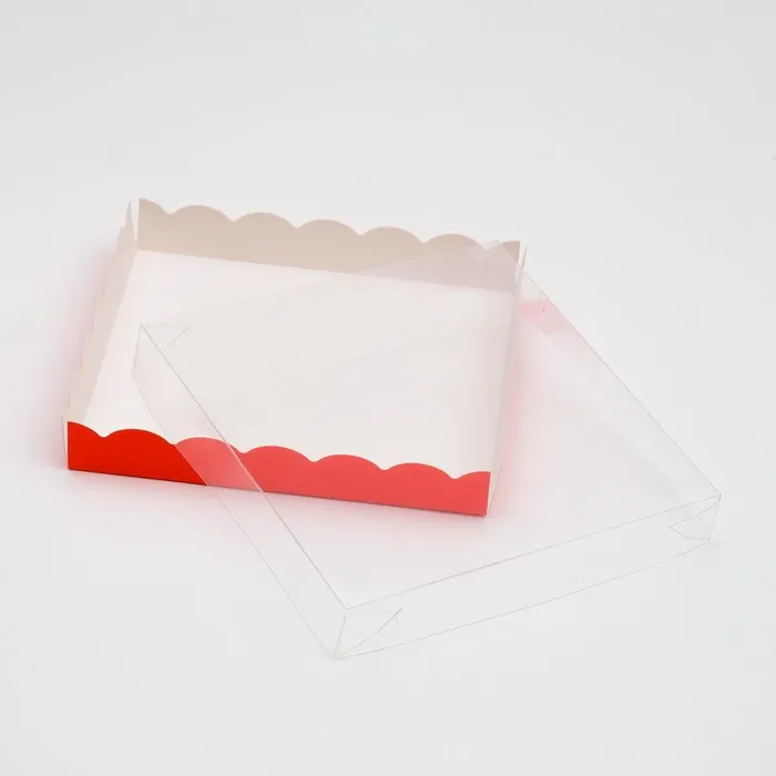 Закрывается с помощью прозрачной крышки, за счет чего продукт можно увидеть до момента вскрытия, а так же качественно транспортировать кондитерское изделие на дальние расстояния.