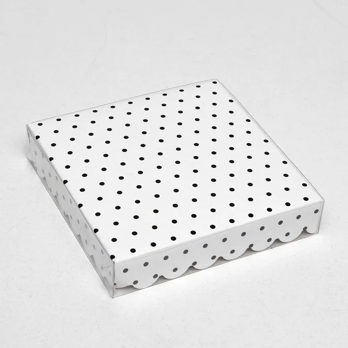 Коробочка для печенья с PVC крышкой «Горох», белая, 15×15×3 см — Характеристики
