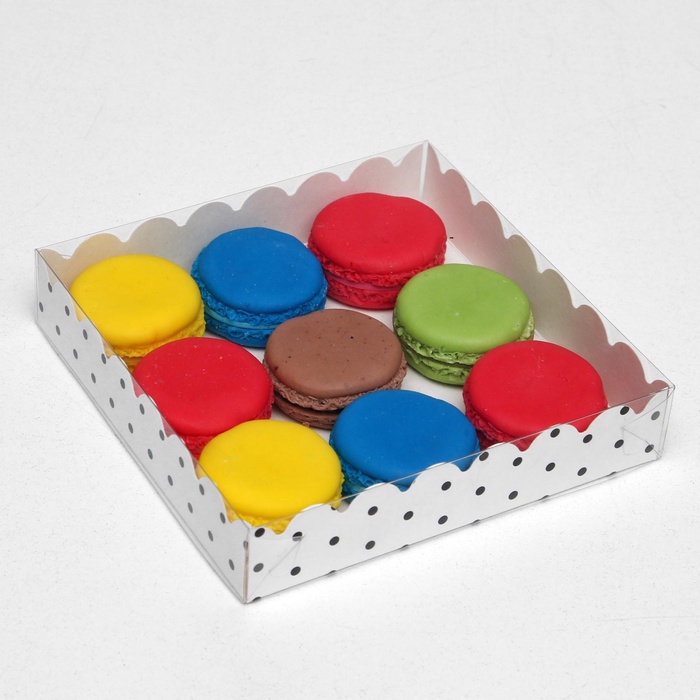 Коробочка для печенья с PVC крышкой «Горох», белая, 15×15×3 см — Характеристики