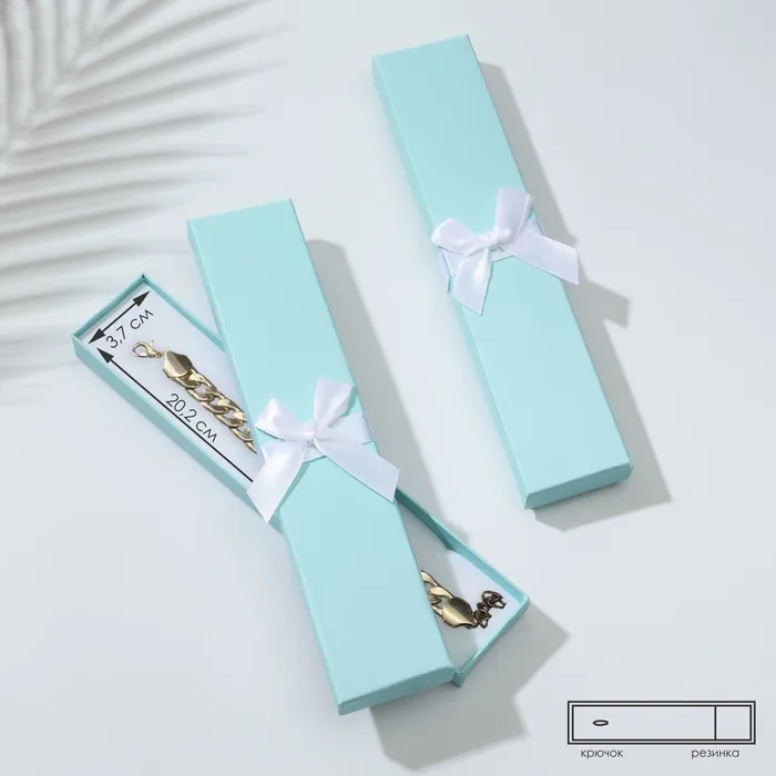 Коробочка подарочная под браслет, цепочку, часы «Тиффани», 21×4 см, (полезная часть 20.2×3.7 см,) бирюзовая — Характеристики