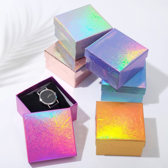 Коробочка подарочная под браслет/часы «Голография», 9×9 см (размер полезной части 8.2×8.2 см), МИКС, вставка чёрная — Характеристики