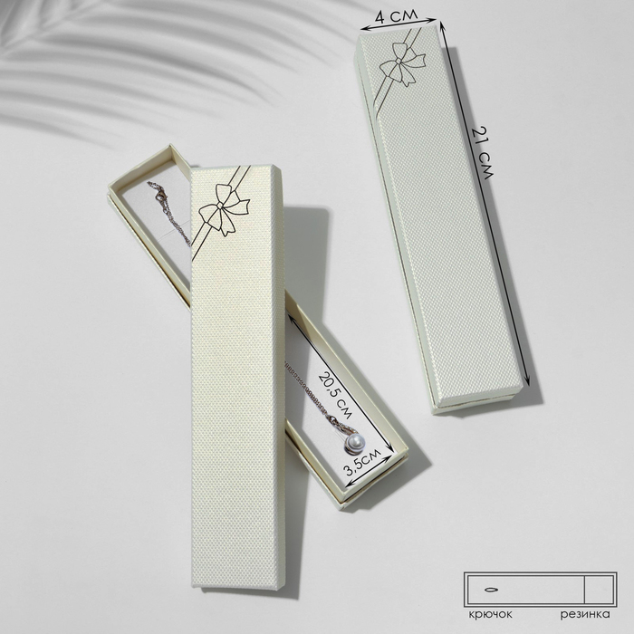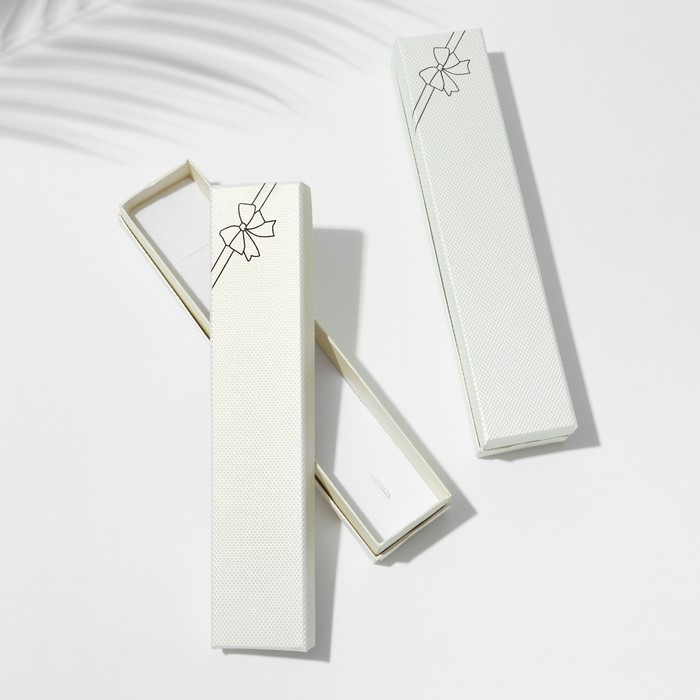 С нашими прекрасными коробочками любой подарок станет еще лучше и ярче. Футляр выполнен из прочного плотного картона. Оптимальный размер коробки 21*4см предназначена для браслета, цепочки, ожерелья, серебряной ложки, бус, четок. Внутри каждой коробочки с крышкой есть белая бархатная подложка. С помощью специальных прорезей на подушечке можно аккуратно разместить и зафиксировать украшения. А если убрать подложку, упаковка станет еще более универсальной.
