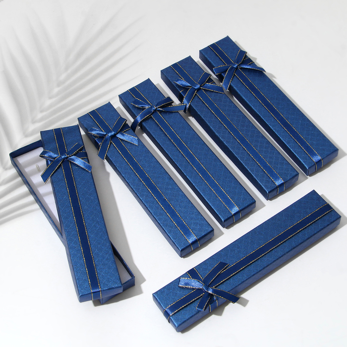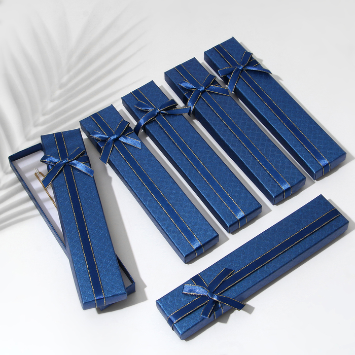 Коробочка подарочная под браслет/цепочку/часы «Бантик» стёганый принт, 21×4 см, синяя, вставка белая