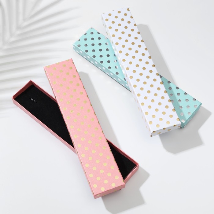 Коробочка подарочная под браслет/цепочку/часы «Горошинки золотые», 21×4 см. (размер полезной части 20.2×3.7 см), МИКС, вставка чёрная