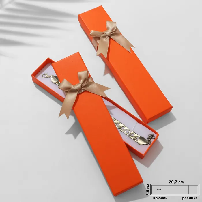 С нашими прекрасными коробочками любой подарок станет еще лучше и ярче. Футляр выполнен из прочного плотного картона. Оптимальный размер коробки 21*4см предназначена для браслета, цепочки, ожерелья, серебряной ложки, бус, четок. Внутри каждой коробочки с крышкой есть белая бархатная подложка. С помощью специальных прорезей на подушечке можно аккуратно разместить и зафиксировать украшения. А если убрать подложку, упаковка станет еще более универсальной.