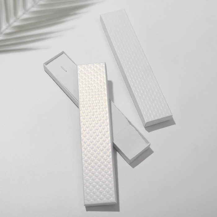 С нашими прекрасными коробочками любой подарок станет еще лучше и ярче. Футляр выполнен из прочного плотного картона. Оптимальный размер коробки 21*4см предназначена для браслета, цепочки, ожерелья, серебряной ложки, бус, четок. Внутри каждой коробочки с крышкой есть белая бархатная подложка. С помощью специальных прорезей на подушечке можно аккуратно разместить и зафиксировать украшения. А если убрать подложку, упаковка станет еще более универсальной.