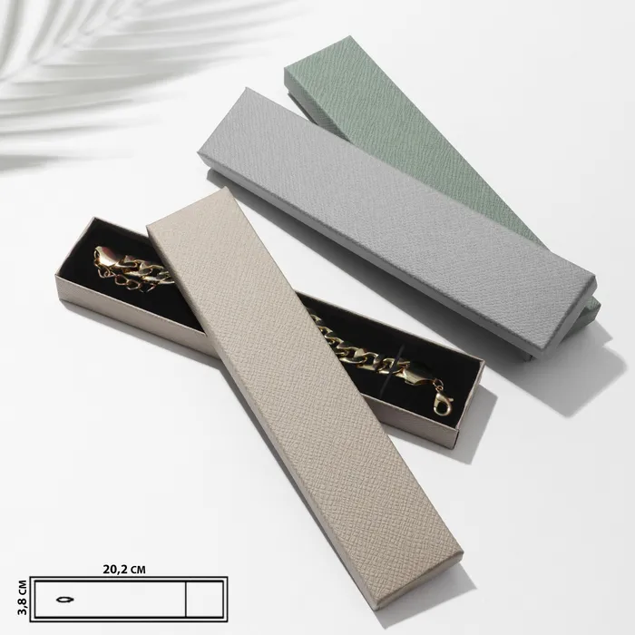 С нашими прекрасными коробочками любой подарок станет еще лучше и ярче. Футляр выполнен из прочного плотного картона. Оптимальный размер коробки 21*4см предназначена для браслета, цепочки, ожерелья, серебряной ложки, бус, четок. Внутри каждой коробочки с крышкой есть черная бархатная подложка. С помощью специальных прорезей на подушечке можно аккуратно разместить и зафиксировать украшения. А если убрать подложку, упаковка станет еще более универсальной.