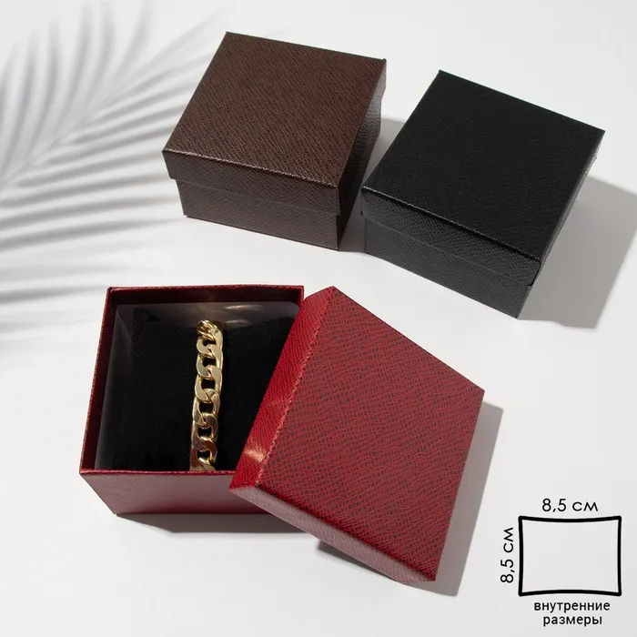 С нашими прекрасными коробочками любой подарок станет еще лучше и ярче. Футляр выполнен из прочного плотного картона. Оптимальный размер коробки 9*9см позволяет разместить разнообразные виды ювелирных изделий – от сережек до колье. Внутри каждой коробочки с крышкой есть черная бархатная подушечка. А если ее убрать, упаковка подойдет даже для часов с мягким плоским ремешком или на цепи.