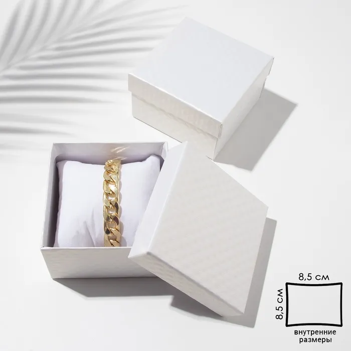С нашими прекрасными коробочками любой подарок станет еще лучше и ярче. Футляр выполнен из прочного плотного картона. Оптимальный размер коробки 9*9см позволяет разместить разнообразные виды ювелирных изделий – от сережек до колье. Внутри каждой коробочки с крышкой есть белая бархатная подушечка. А если ее убрать, упаковка подойдет даже для часов с мягким плоским ремешком или на цепи.