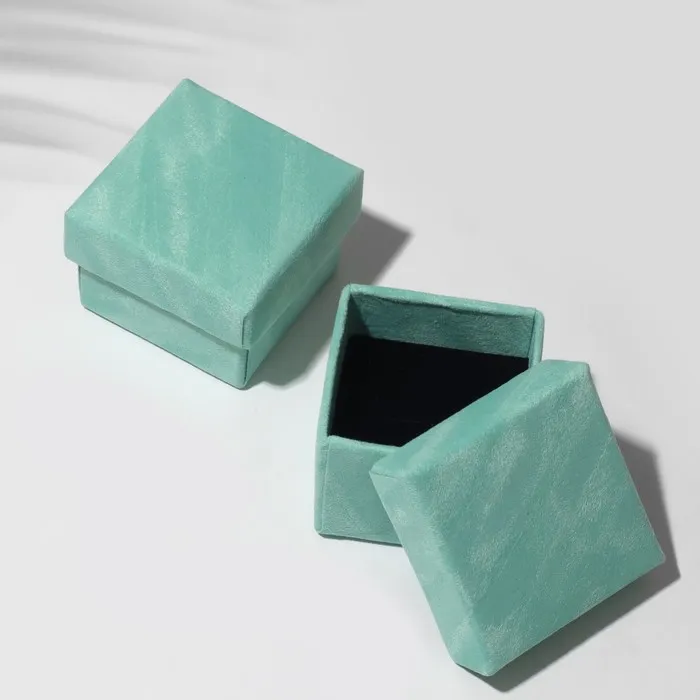 Коробочка подарочная под кольцо/серьги «Бархат», 5×5 (размер полезной части 4.2×4.2 см), бирюзовая, вставка чёрная — Характеристики