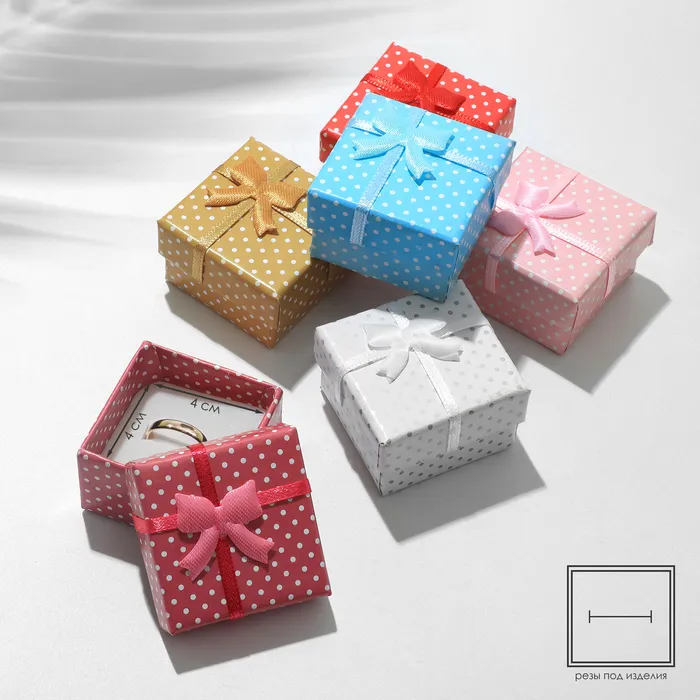 Коробочка подарочная под кольцо/серьги «Горошек» с бантом, 4.5×4.5, МИКС, вставка белая — Характеристики