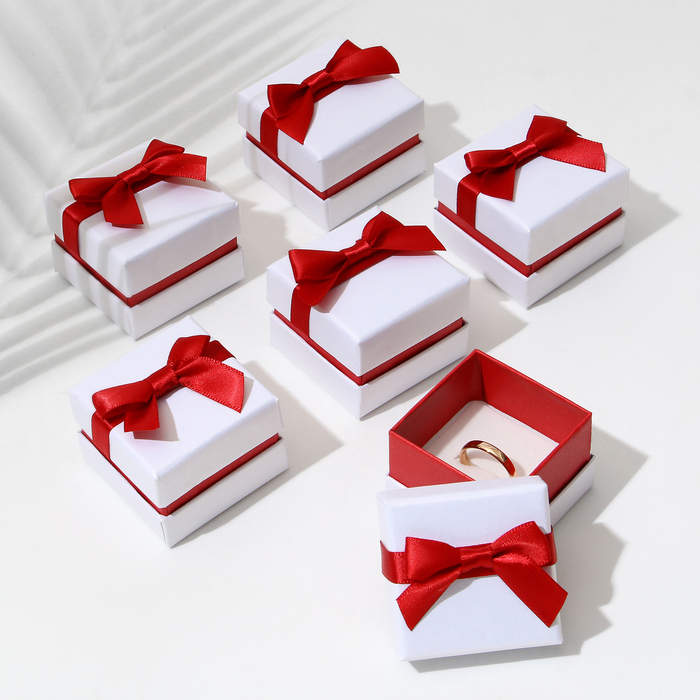 Коробочка подарочная под кольцо/серьги «Рафаэлло», 5×5, бело-красная, вставка белая — Характеристики