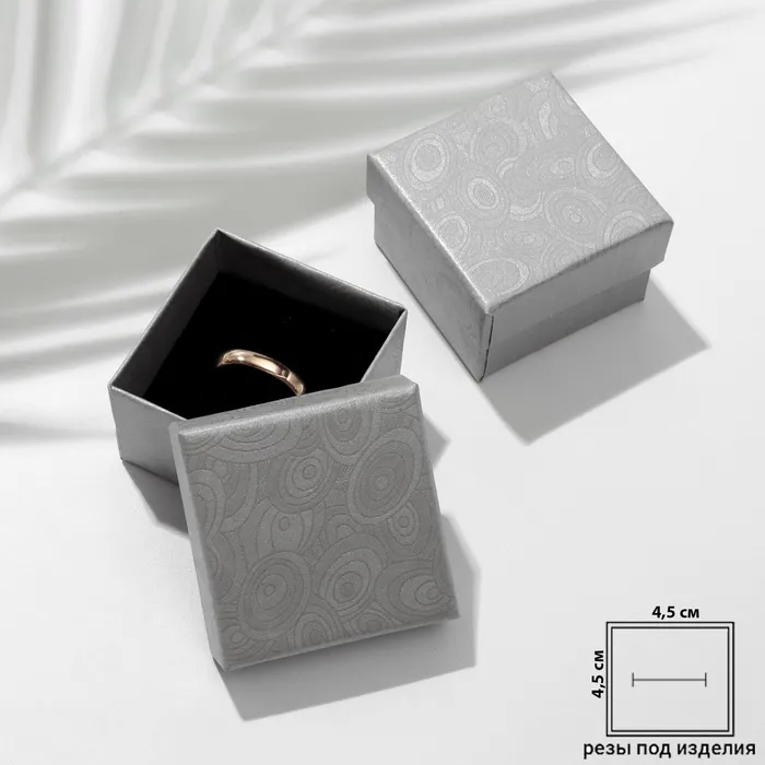 Коробочка подарочная под кольцо/серьги «Узоры», 5×5, цвет серебро, вставка чёрная — Характеристики