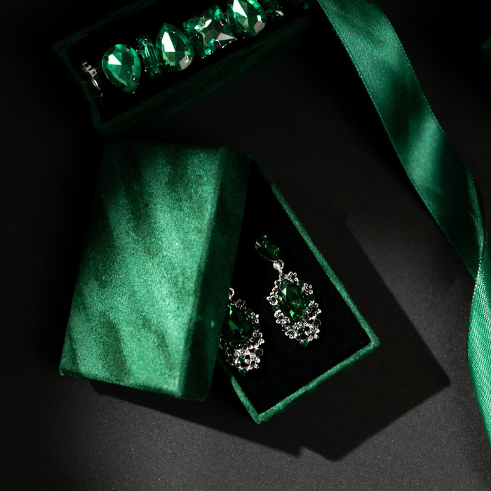 Коробочка подарочная под набор «Бархат», 5×8 (размер полезной части 4.7×7.7 см), зелёная, вставка чёрная — Характеристики
