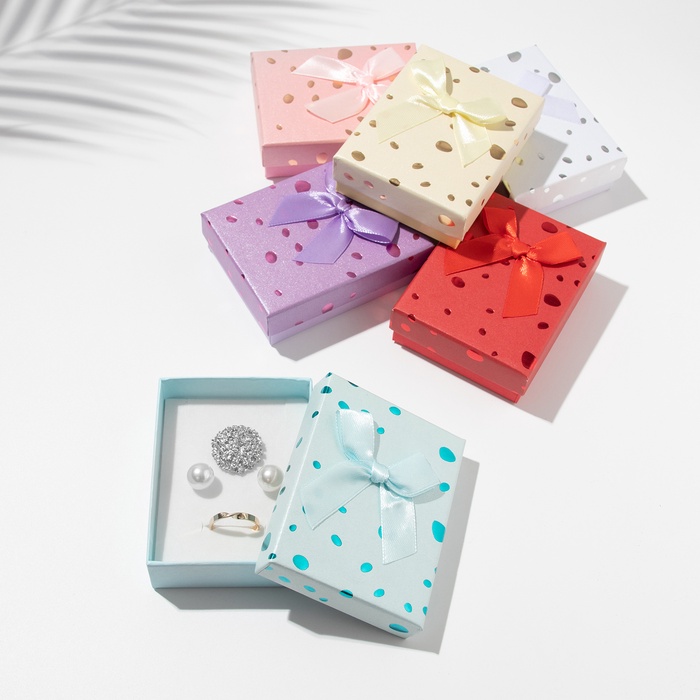 С нашими прекрасными коробочками любой подарок станет еще лучше и ярче. Футляр выполнен из прочного плотного картона. Оптимальный размер коробки 7*9см позволяет разместить разнообразные виды ювелирных изделий – от сережек до колье. Внутри каждой коробочки с крышкой есть белая бархатная подложка. С помощью специальных прорезей на подушечке можно аккуратно разместить и зафиксировать цепочки, гвоздики и перстни. А если убрать подложку, упаковка подойдет даже для часов с мягким плоским ремешком или на цепи.