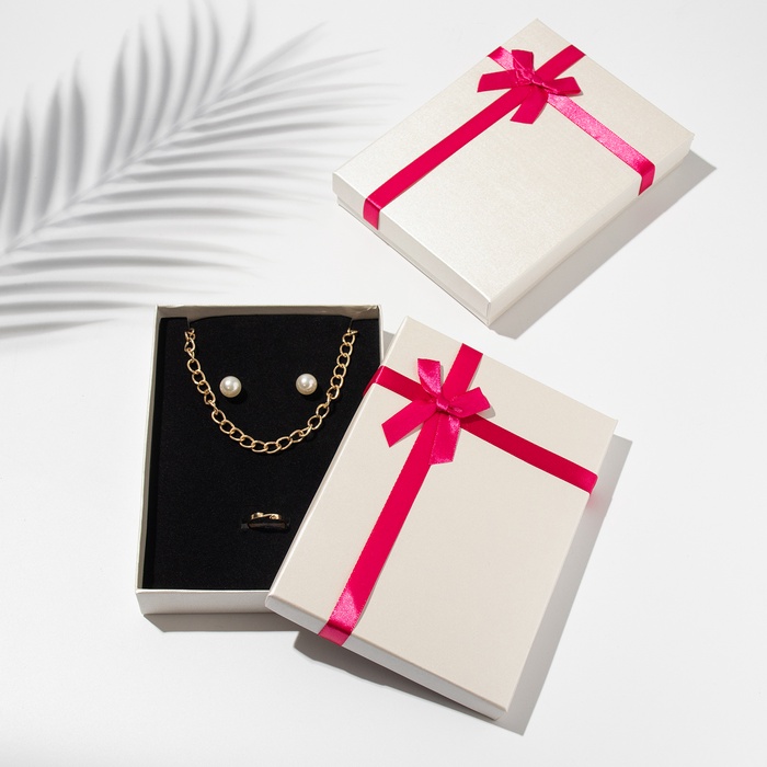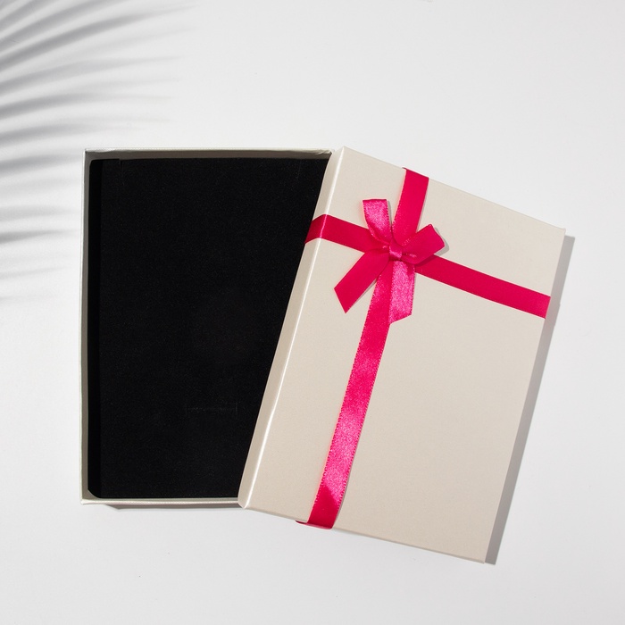 С нашими прекрасными коробочками любой подарок станет еще лучше и ярче. Футляр выполнен из прочного плотного картона. Оптимальный размер коробки 13*18см позволяет разместить разнообразные виды ювелирных изделий – от сережек до колье. Внутри каждой коробочки с крышкой есть чёрная бархатная подложка. С помощью специальных прорезей на подушечке можно аккуратно разместить и зафиксировать цепочки, гвоздики и перстни. А если убрать подложку, упаковка подойдет даже для часов с мягким плоским ремешком или на цепи.