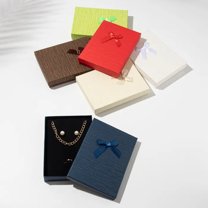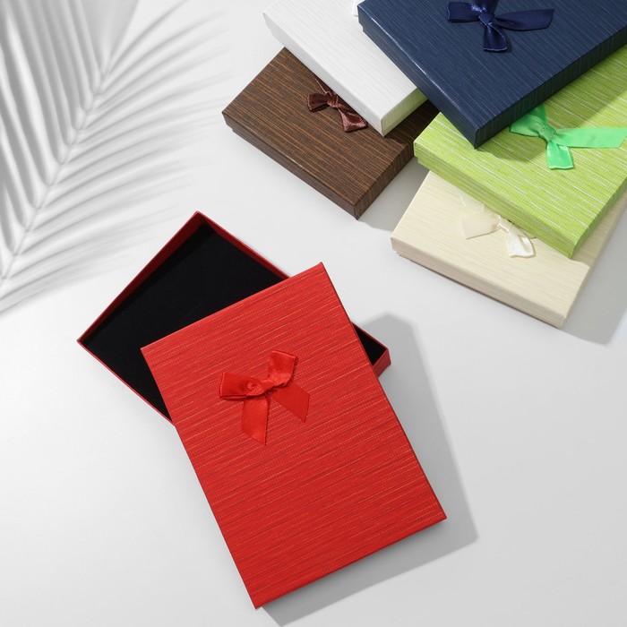 С нашими прекрасными коробочками любой подарок станет еще лучше и ярче. Футляр выполнен из прочного плотного картона. Оптимальный размер коробки 13*18см позволяет разместить разнообразные виды ювелирных изделий – от сережек до колье. Внутри каждой коробочки с крышкой есть чёрная бархатная подложка. С помощью специальных прорезей на подушечке можно аккуратно разместить и зафиксировать цепочки, гвоздики и перстни. А если убрать подложку, упаковка подойдет даже для часов с мягким плоским ремешком или на цепи.