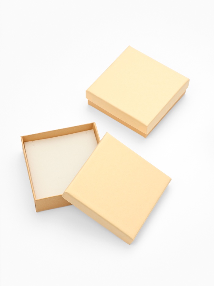 Вашему вниманию представлена очаровательная подарочная коробочка размером 9х9 см, выполненная в мягкой бежевой цветовой гамме. Строгий внешний облик сочетается с воздушным белым интерьером, придающим ей особое очарование и нежность.