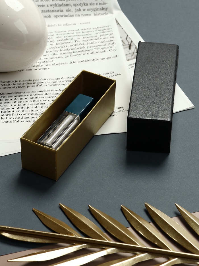 Изготовленная из качественного картона, коробочка обеспечивает надежную защиту содержимого, а черная вставка добавляет нотку sophistication. Благодаря своим компактным размерам, она идеально подходит для упаковки помад и других мелких косметических аксессуаров, превращая каждый подарок в настоящую находку.