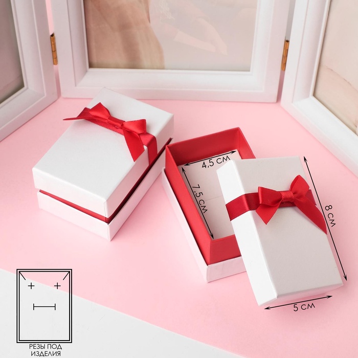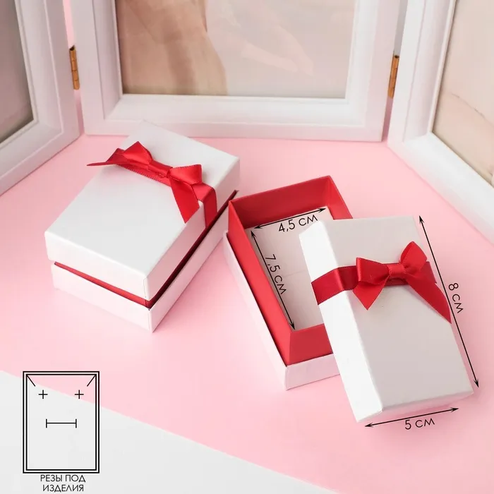 - Эстетичный дизайн: сочетание белого и красного цветов с бантиком делает коробочку привлекательной и стильной.