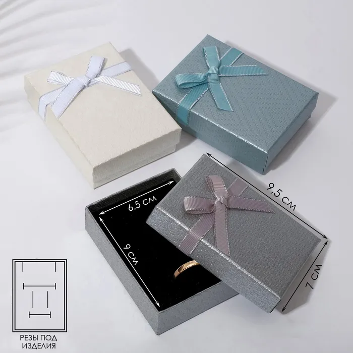 С нашими прекрасными коробочками любой подарок станет еще лучше и ярче. Футляр выполнен из прочного плотного картона. Оптимальный размер коробки 7*9см позволяет разместить разнообразные виды ювелирных изделий – от сережек до колье. Внутри каждой коробочки с крышкой есть черная бархатная подложка. С помощью специальных прорезей на подушечке можно аккуратно разместить и зафиксировать цепочки, гвоздики и перстни. А если убрать подложку, упаковка подойдет даже для часов с мягким плоским ремешком или на цепи.