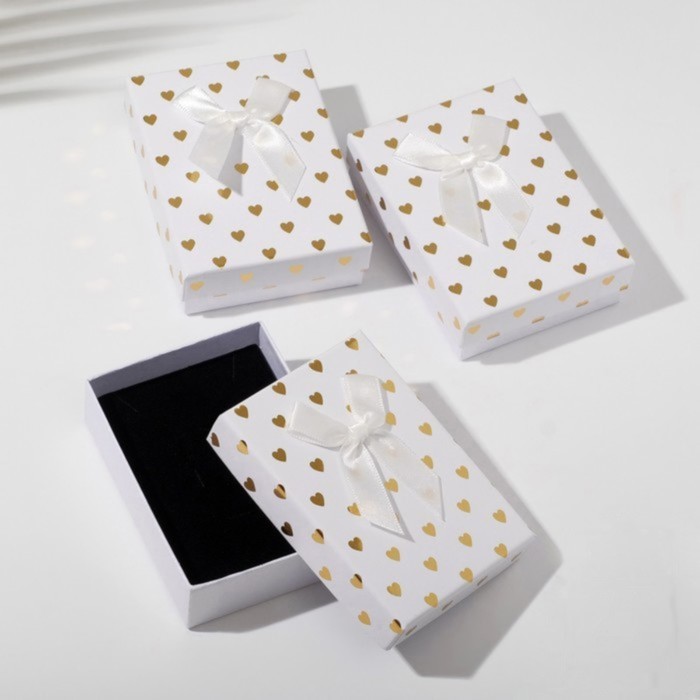 Коробочка подарочная под набор «Сердечки», 7×10 (размер полезной части 6.5×9 см), белая, вставка чёрная — Характеристики
