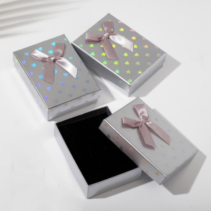 Коробочка подарочная под набор «Сердечки», 7×9.5 (размер полезной части 6.5×9 см), серая, вставка чёрная