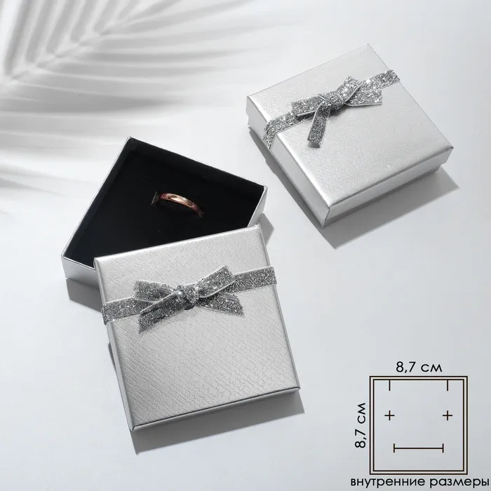 С нашими прекрасными коробочками любой подарок станет еще лучше и ярче. Футляр выполнен из прочного плотного картона. Оптимальный размер коробки 9*9см позволяет разместить разнообразные виды ювелирных изделий – от сережек до колье. Внутри каждой коробочки с крышкой есть черная бархатная подложка. С помощью специальных прорезей на подушечке можно аккуратно разместить и зафиксировать цепочки, гвоздики и перстни. А если убрать подложку, упаковка подойдет даже для часов с мягким плоским ремешком или на цепи.